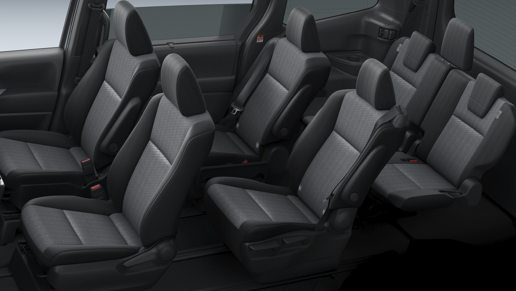 広々とした室内空間と使いやすいシートアレンジで、家族やグループの移動に最適。
